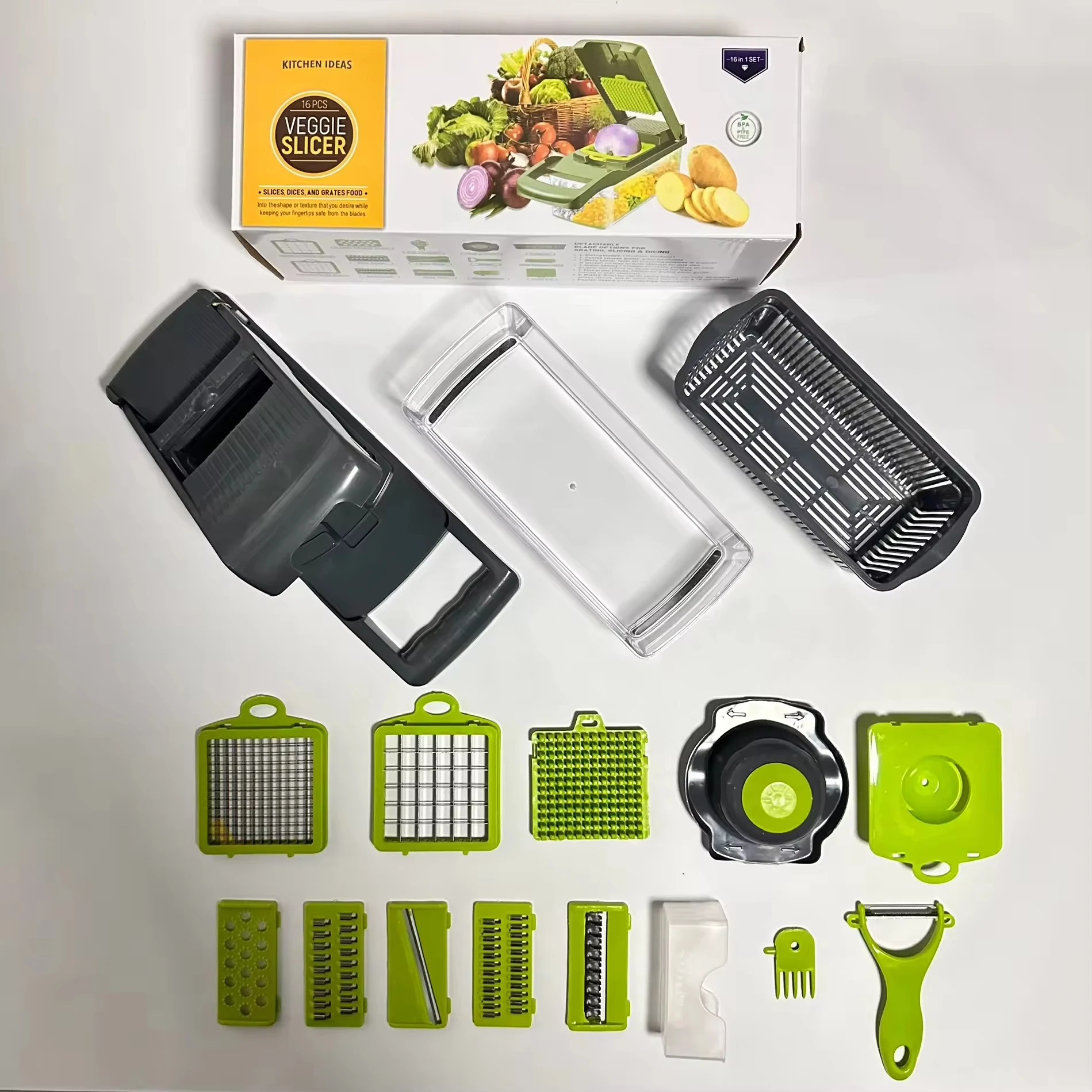 Hyri Top Seller Kitchen Utensils Manual Home and Kitchen Gadgets Commercial Vegetable Chopper 15 in 1 Plastic Pro Onion Chopper